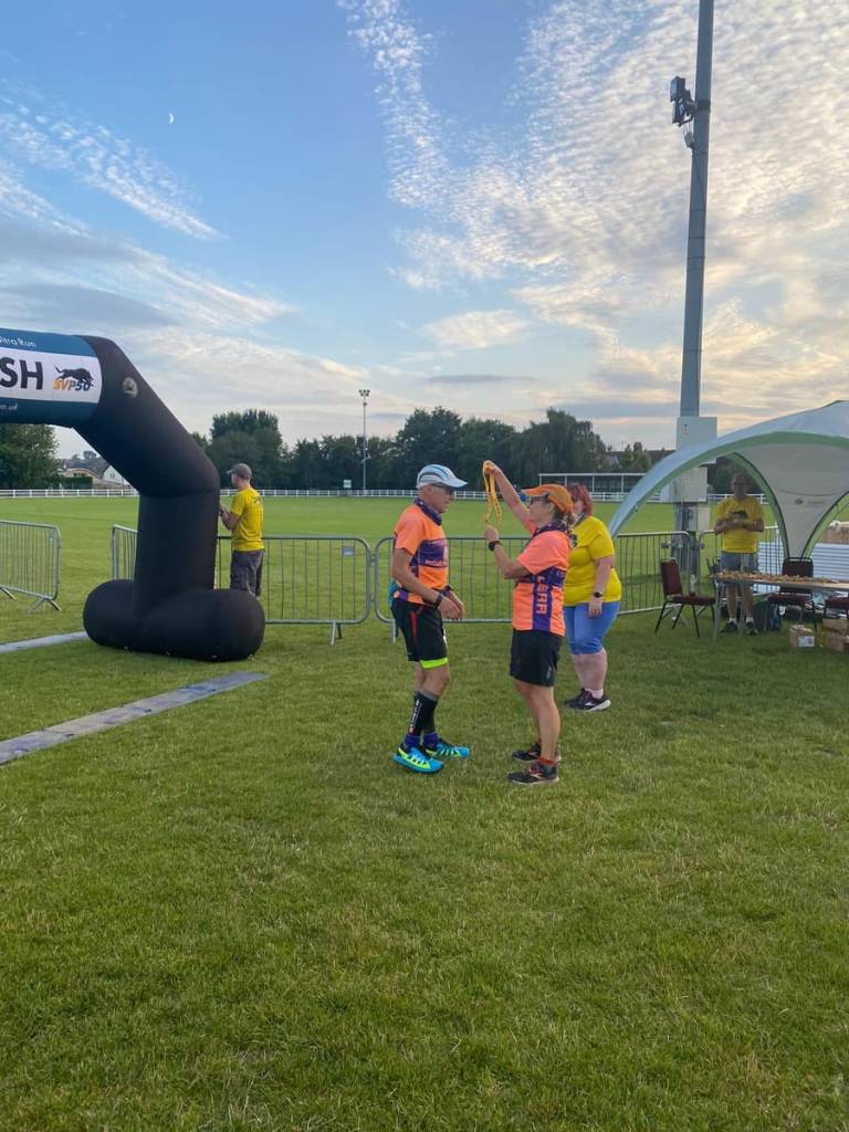 The very last section of just under a mile is not usually my favourite, it is along the road and always seems longer than it really is. However this year it was made significantly more pleasant when I met Esther marshalling the last road crossing before the finish. We have a ‘in’ joke about USB cables that probably confused the other chap that crossed the road with me.