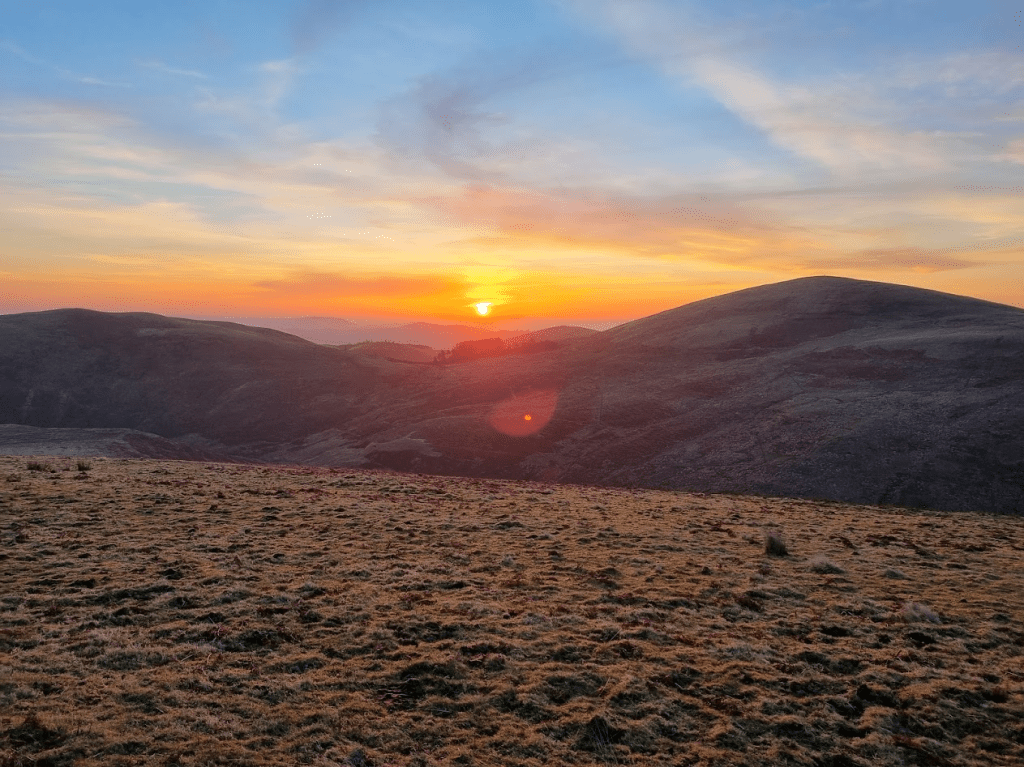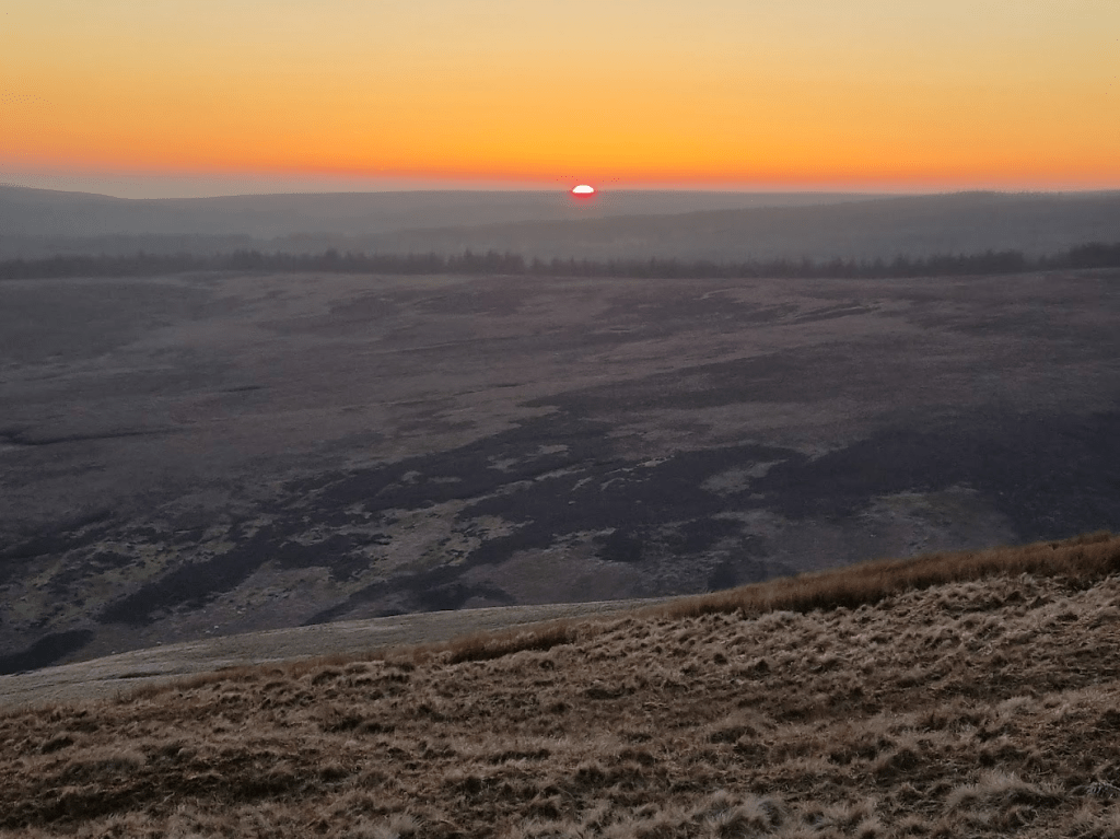 After the small summits of Bloodybush Edge and Cushat Law it was back down to Salter’s Road and an easy jog to Checkpoint Two. I was there by quarter to six and assured by one of the marshals that my ambition for a same day finish was very realistic. I was less certain as I knew it would be dark in an hour or so but it was still good that someone had confidence in me. I had more coffee and got my bottles refilled with water. I picked up two sachets of Tailwind in case I wanted to add them to my bottle but I never did. Realistically I knew I probably wasn’t taking in enough calories but I felt OK so I trusted my body and set off on the last leg of the adventure.