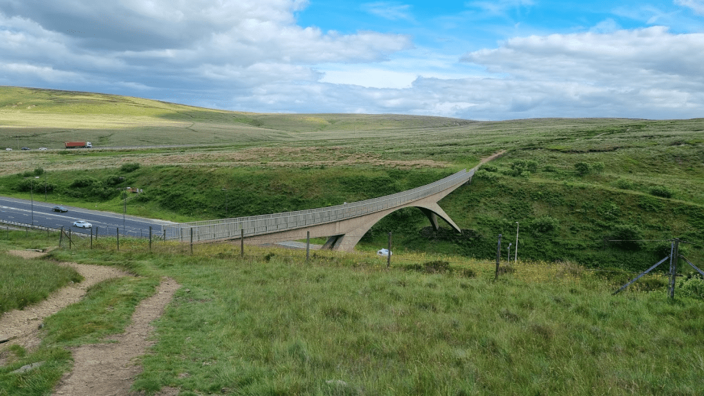 After Nicky’s it’s a trip across the M62 on what I think is the biggest footbridge in the UK and along Blackstone Edge until Blackstone Edge Reservoir and its compatriots leading ever onwards to Stoodley Pike.
