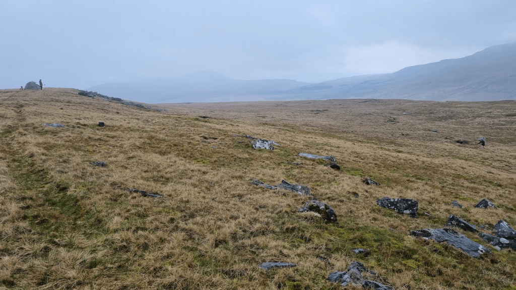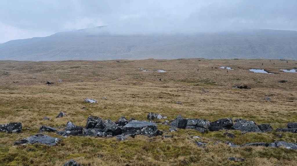 There was little change of elevation between Gragareth and the next hilltop checkpoint at Great Coum. Navigation was easy as you just followed a wall. The advice was to stick to the left side of the wall as it meant you didn’t have to climb over any adjoining walls. It did however mean you had to run though bogs. Most of the boggy bits could be jumped or avoided. One of the ones I found was just about jumpable if you got it right. I sort of tripped, stumbled and jumped into the middle of it instead. It wasn’t quite waist deep but was very wet.