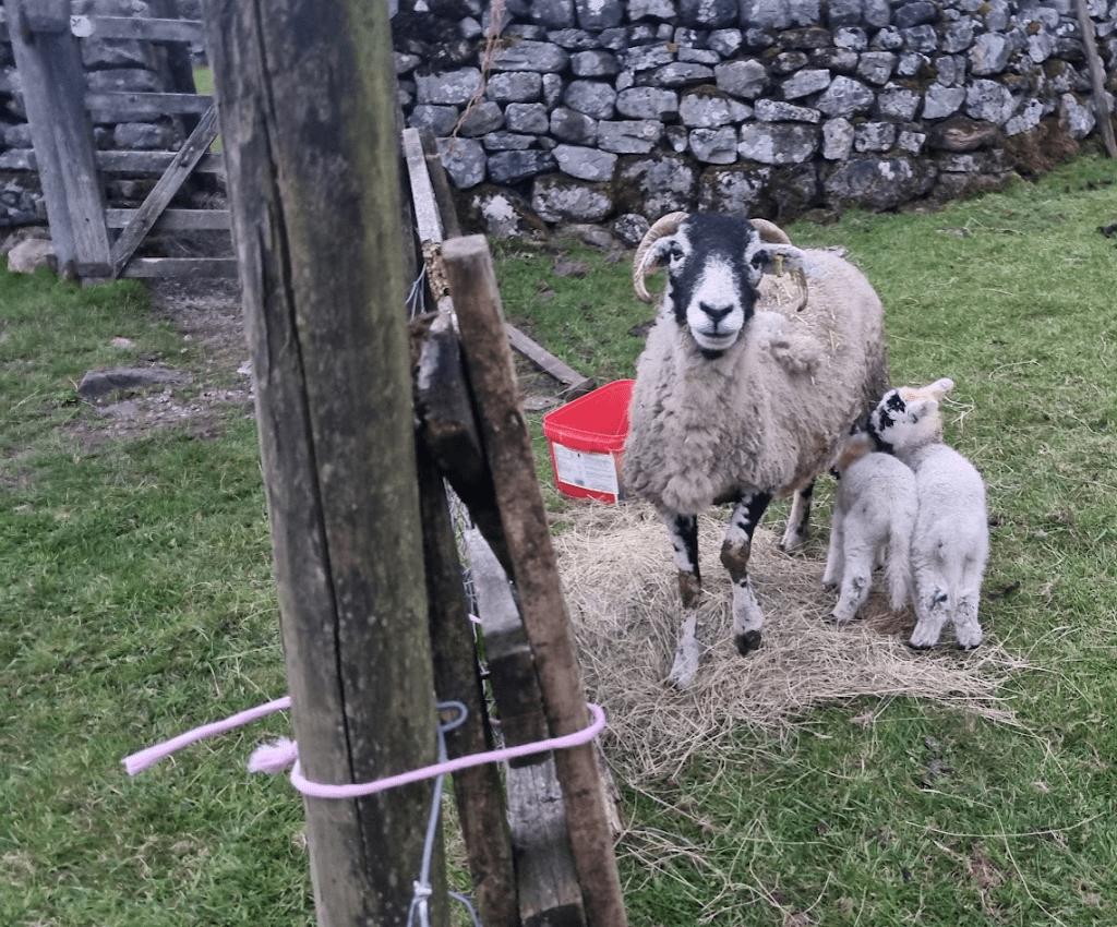 After we left the checkpoint we passed some very cute lambs. These came over and nuzzled our hands whilst mum looked over with a slightly worried expression on her face (I’m making that up really – I can’t really read sheep’s expressions). I tried to take a photo but due to the limited number of pockets on the front of my pack my phone had been sharing a pocket with several biscuits for the last few hours, including a rapidly disintegrating fig roll. By the time I’d wiped the crumbs of the camera the lambs had got hungry and gone over to mum to feed. I took a picture anyway.