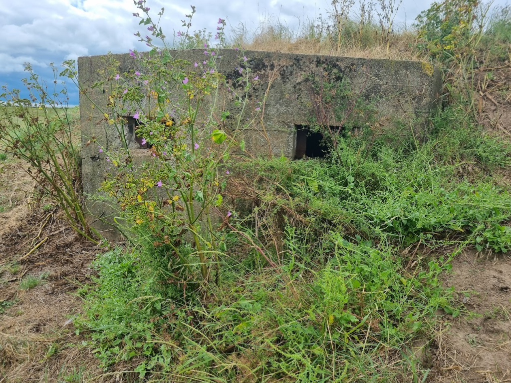 Due to the long grass on sections, we had been told it was acceptable to use the lower path at the bottom of the sea wall if it existed and was easier to negotiate. I dropped onto it somewhere outside Burnham and got a whole new perspective on that section of the sea wall. I was aware there were various coastal defences along that stretch but it was only by being beside it rather than on top I saw how many. I counted six pill boxes built into the sea wall, as well as the minefield control tower beside it, with which I was very familiar.