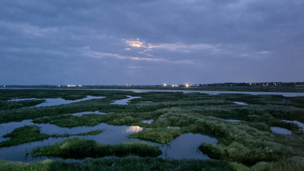 The waist high grass was a challenge, the cow parsley was annoying and the head high triffids slightly terrifying. The other slightly annoying point was noticing a clearly much easier path below the sea wall which I hadn’t seen earlier because it was dark. My ETA was also getting nearer and nearer to midnight. By now I was knackered, I’d got aches in muscles I didn’t know I had caused by the enforced gait changes in the long grass I think. I was stumbling, pushing, even occasionally running, just desperate to get out of there and get to Salcott-cum-Virley before midnight.