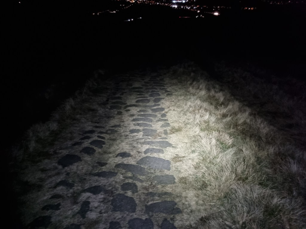I passed the marshals outside the White House pub and set off into what, in my mind, is the home straight. The run around various reservoirs is straightforward. The run to Stoodley Pike is not difficult either but it does seem to go on for a long while in the dark.