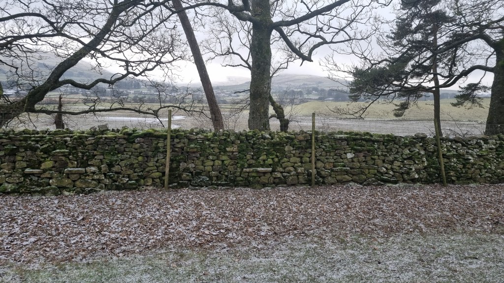 The ‘down’ was a very different matter. In summer coming down off Great Shunner Fell can be enormous fun. The path is mostly slabbed, the gradient is not too steep and so it is quite runnable. This time I was taking every route down apart from any that involved the actual slabbed path as the slabs were mostly covered in solid ice. This was kind of fun but also a bit more tiring. At least in meant I was generating plenty of body heat though. I was wearing an old Haglofs zip top I’d bought for skiing 20+ years ago and my brand new OMM Core fleece. It was proving to be a winning combination with ‘the big coat’.