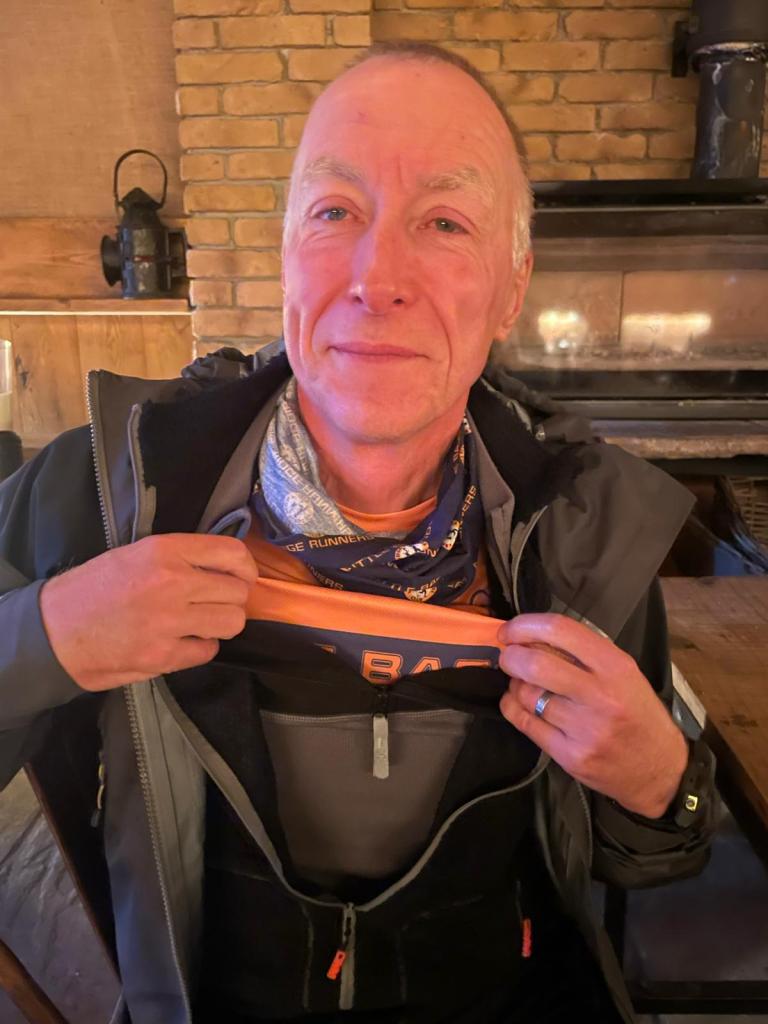 I met Terry through our running club, Little Baddow Ridge Runners. I get a huge amount of support for my slightly unusual adventures from members of the club and so whenever possible I run in club colours. On this occasion no-one would really see them but I was using my LBRR top as part of my base layering and my compulsory neck gaiter was also in club colours.