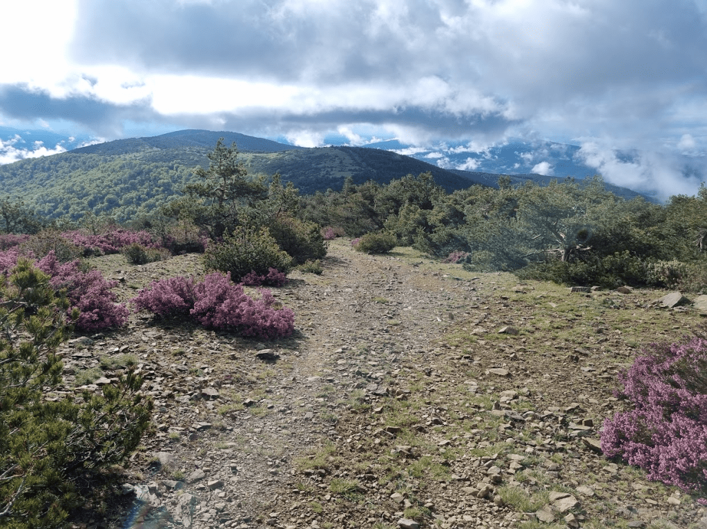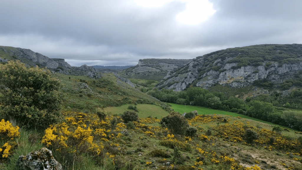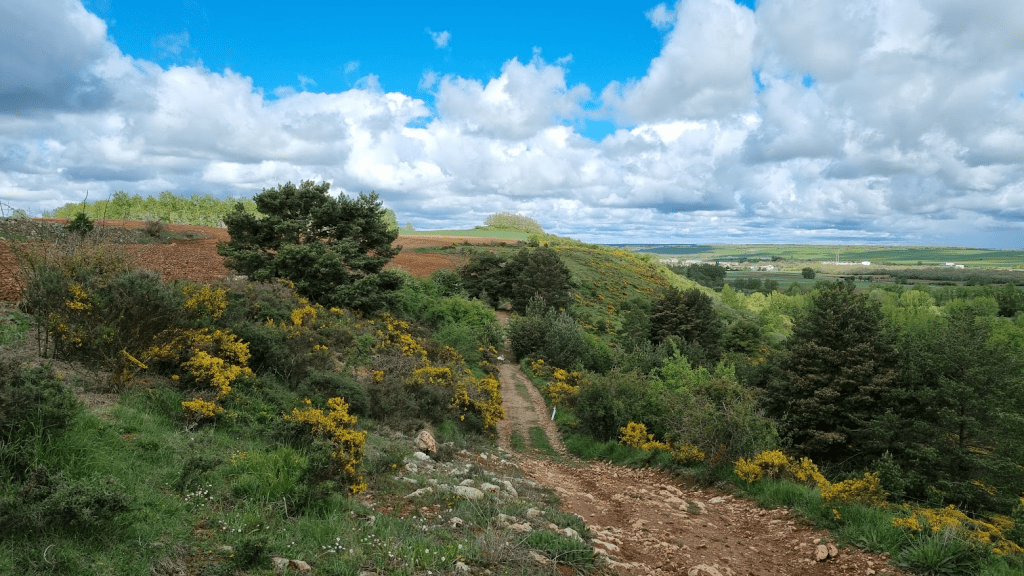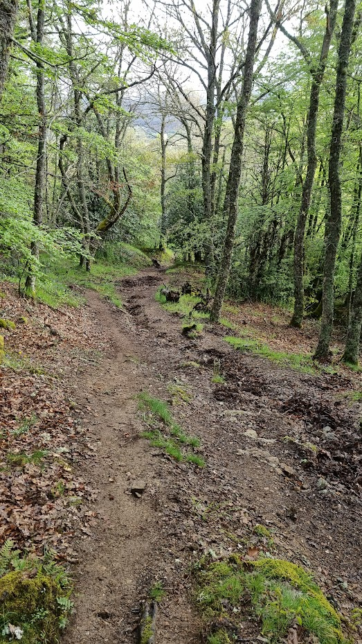 The first 5km was along the Camino de Santiago. I saw a few pilgrims but it wasn’t a great day for a pilgrimage, grey and drizzly. I struggled with the gradual uphill and was happy when I eventually started to catch a few people and could at least exchange a few words. I was happy to see Bluebells though.