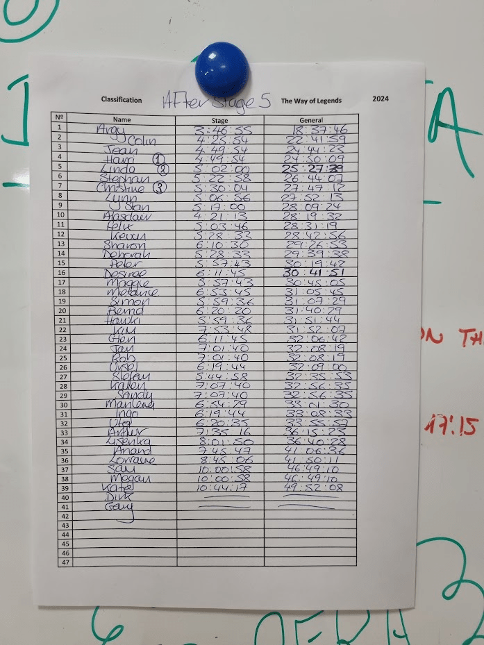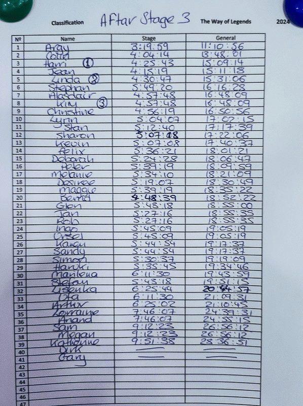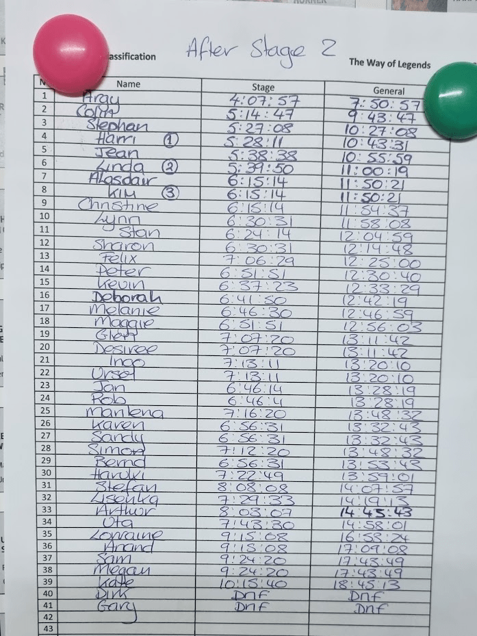 Unless something went badly wrong, the men’s podium was settled. I would need to beat Argy by four hours to get first, Jean would have to beat me by two to get second and Stefan would have to beat Jean by two hours to deprive him of third place.