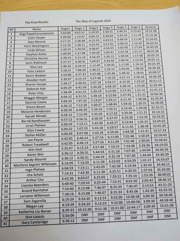 Lynn missed out on third place by an agonising two seconds. Despite only having one working leg, Kim completed the last stage to become a very definite Legend. Our last classified finisher was Kate, this was the first time she had managed to complete a multi-day ultra so it was a huge achievement, especially as she was out in some much worse weather than I had to deal with.