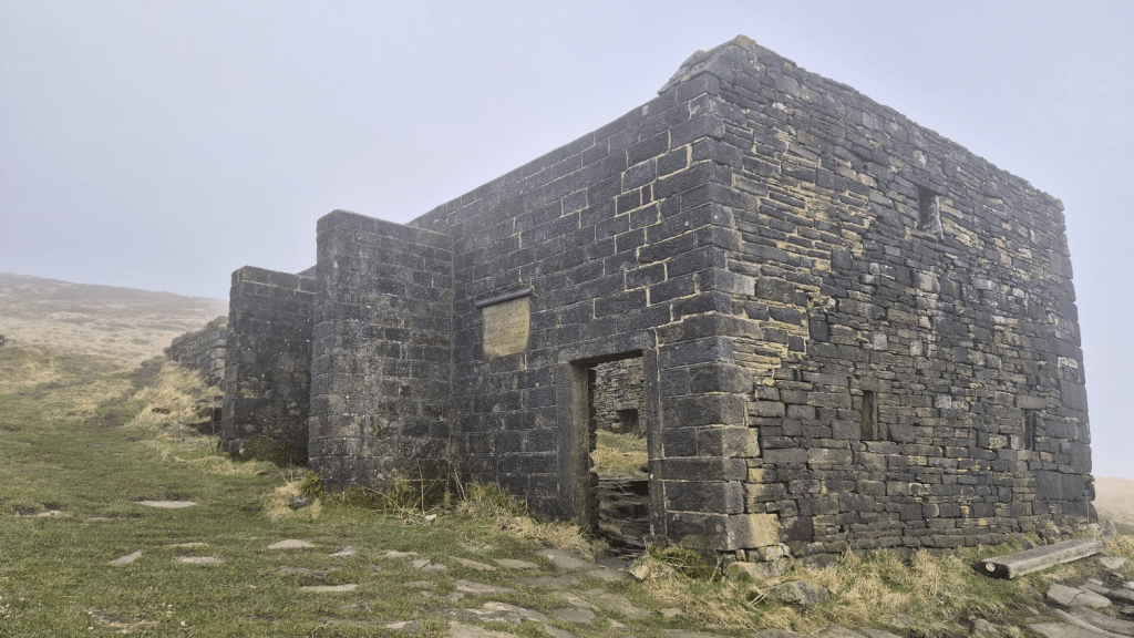 From the reservoirs it is a steady climb to Top Withens. For a building that definitely wasn’t the inspiration for Wuthering Heights, it attracts a lot of attention from Bronte fans. However at 5am in the morning in January it was entirely the preserve of Spine racers. As it was dark, I didn’t take a picture, however as I’ve written a lot of words with nothing to illustrate them with, here is a picture of Top Withens taken on the 2025 Haworth Hobble.