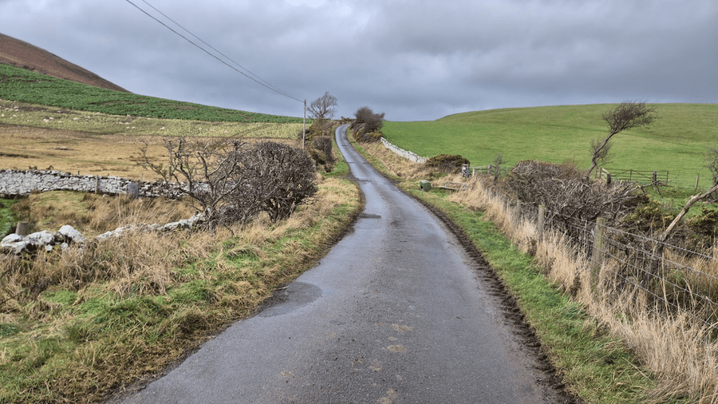 I wasn’t in any great hurry to leave the checkpoint. I was several hours behind where I had been on my previous Winter Spine attempt, which had finished just before midnight on Friday. I didn’t really want to finish in the early hours of Saturday morning as that would mean that if Sharon was to pick me up form Kirk Yetholm (and I hoped she would) then she would miss a nights sleep on Friday, which wouldn’t be great as she was driving us home on Sunday. As result I left Bellingham at 1pm, almost seven hours later than in 2024. Had I really thought about it I would have realised that, as every other leg had taken significantly longer than 2024, the las leg was also liable to take longer, and I would have left a bit earlier but see previous comment about my ‘functional age’. I had also changed shoes. I had a pair of Inov8 Trail Talon Ultras in my bag, similar to what I used on the Challenger North. They had deeper studs (6mm as opposed to 4.5mm) and were clean so it seemed silly not to use them.