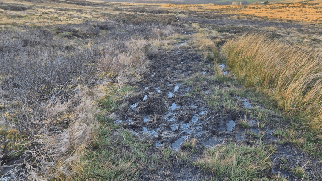 The point to this (if there is one) is that you then cross the A689 directly opposite the entry to the next bit of bog and avoid walking along the A689. However, I’d been over there at least four times previously and had never found anything remotely like a path to the stile. Winter 2026 broke that duck! Presumably enough people had pretended the path existed to actually have created one by the time I got there.