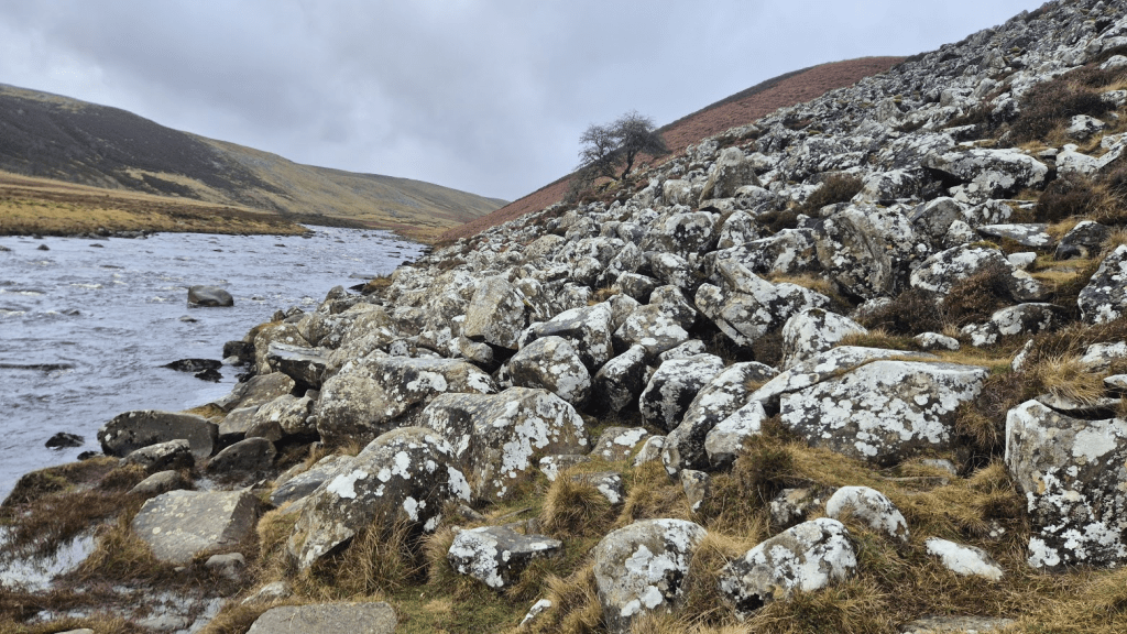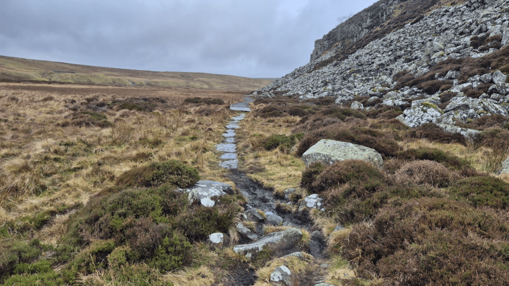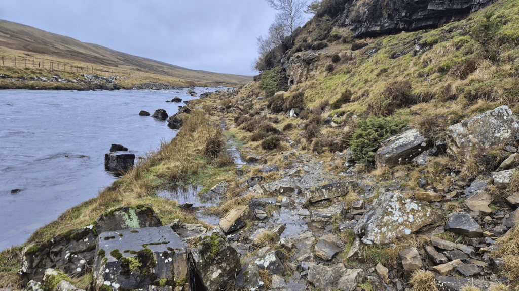 After leaving the Grey Road and turning off alongside the River Rede, I had a small navigational issue, and I’m not sure why. My GPS route wanted me to turn to go alongside the river at a point where there didn’t seem to be a path. It’s where the OS map says the Pennine Way goes, but all other mapping indicates that the route continues along a track and turns off a few hundred metres later. I’ve checked and my Challenger North route followed the ‘down the track further’ route so that explains why I had no issues in June, but my 2024 route was the same as my 2026 one (mainly because it was the 2024 route with updates as necessary). I can only guess that in 2024 I wasn’t paying enough attention to notice the difference.