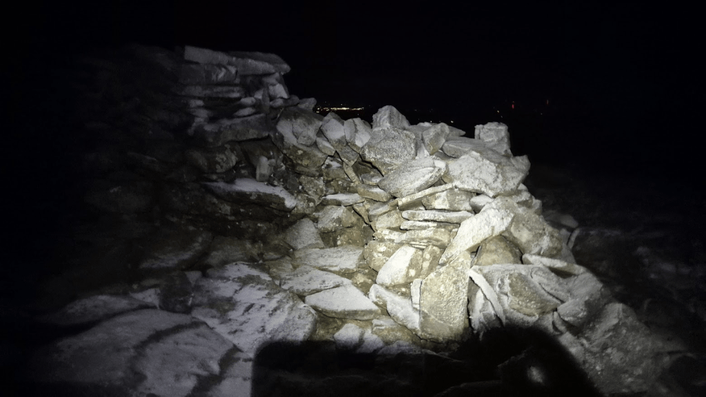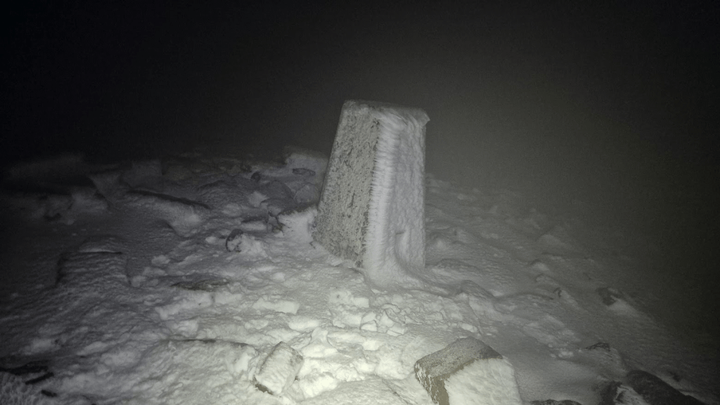 I wasn’t in any great hurry to leave the checkpoint. I was several hours behind where I had been on my previous Winter Spine attempt, which had finished just before midnight on Friday. I didn’t really want to finish in the early hours of Saturday morning as that would mean that if Sharon was to pick me up form Kirk Yetholm (and I hoped she would) then she would miss a nights sleep on Friday, which wouldn’t be great as she was driving us home on Sunday. As result I left Bellingham at 1pm, almost seven hours later than in 2024. Had I really thought about it I would have realised that, as every other leg had taken significantly longer than 2024, the las leg was also liable to take longer, and I would have left a bit earlier but see previous comment about my ‘functional age’. I had also changed shoes. I had a pair of Inov8 Trail Talon Ultras in my bag, similar to what I used on the Challenger North. They had deeper studs (6mm as opposed to 4.5mm) and were clean so it seemed silly not to use them.